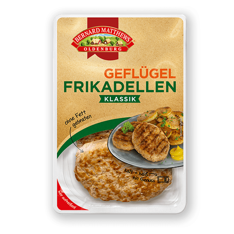 Einen Klassiker der deutschen Küche aus Geflügelfleisch erhalten Sie mit unseren Geflügel-Frikadellen. Da wir diese ohne Fett braten, enthalten sie nur 10% Fett und sind sowohl heiß als auch kalt ein Genuss. Durch die einfache und schnelle Zubereitung in der Pfanne oder Mikrowelle eignen sich unsere Geflügel-Frikadellen perfekt, wenn es mal schnell gehen soll. Beispielsweise in der Mittagspause.