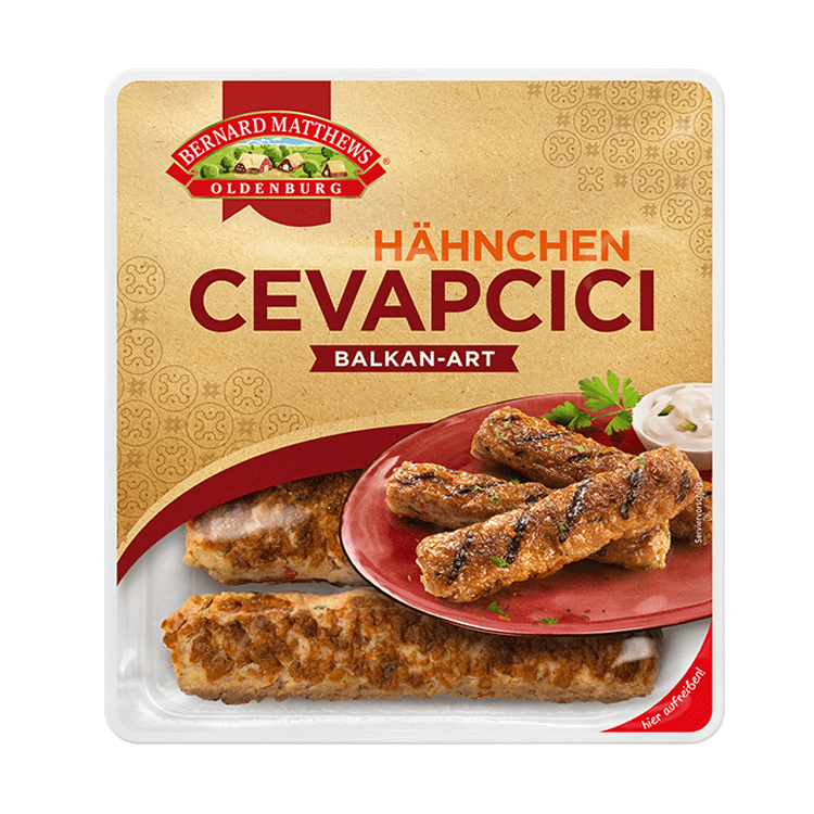 Erleben Sie den Geschmack des Balkans! Durch die typische und herzhafte Würzung unseres Hähnchen-Cevapcici erleben Sie die geschmackliche Vielfalt des Balkan. Durch die schonende Zubereitung unserer Hähnchen-Cevapcici aus köstlichem Geflügelfleisch, welche ohne Fett gebraten werden, erhalten Sie ein Geschmackserlebnis auch wenn es mal schnell gehen muss. Sie können unser Hähnchen-Cevapcici entweder kalt oder nach kurzem Erwärmen in der Pfanne oder Mikrowelle pur oder mit einem Dip und Reis genießen.